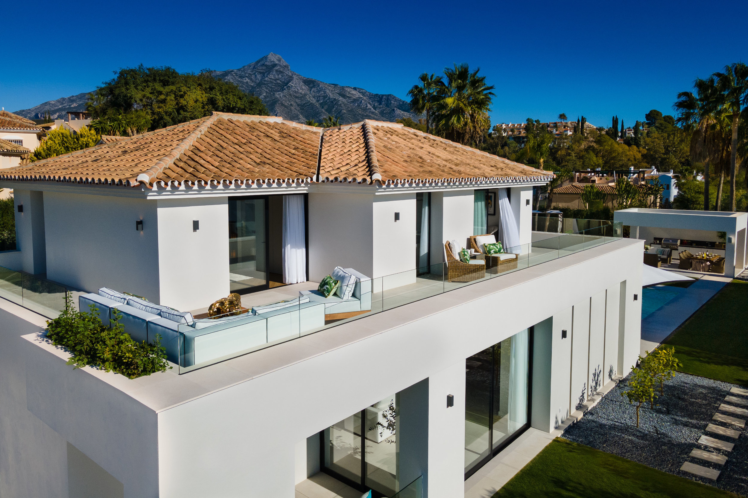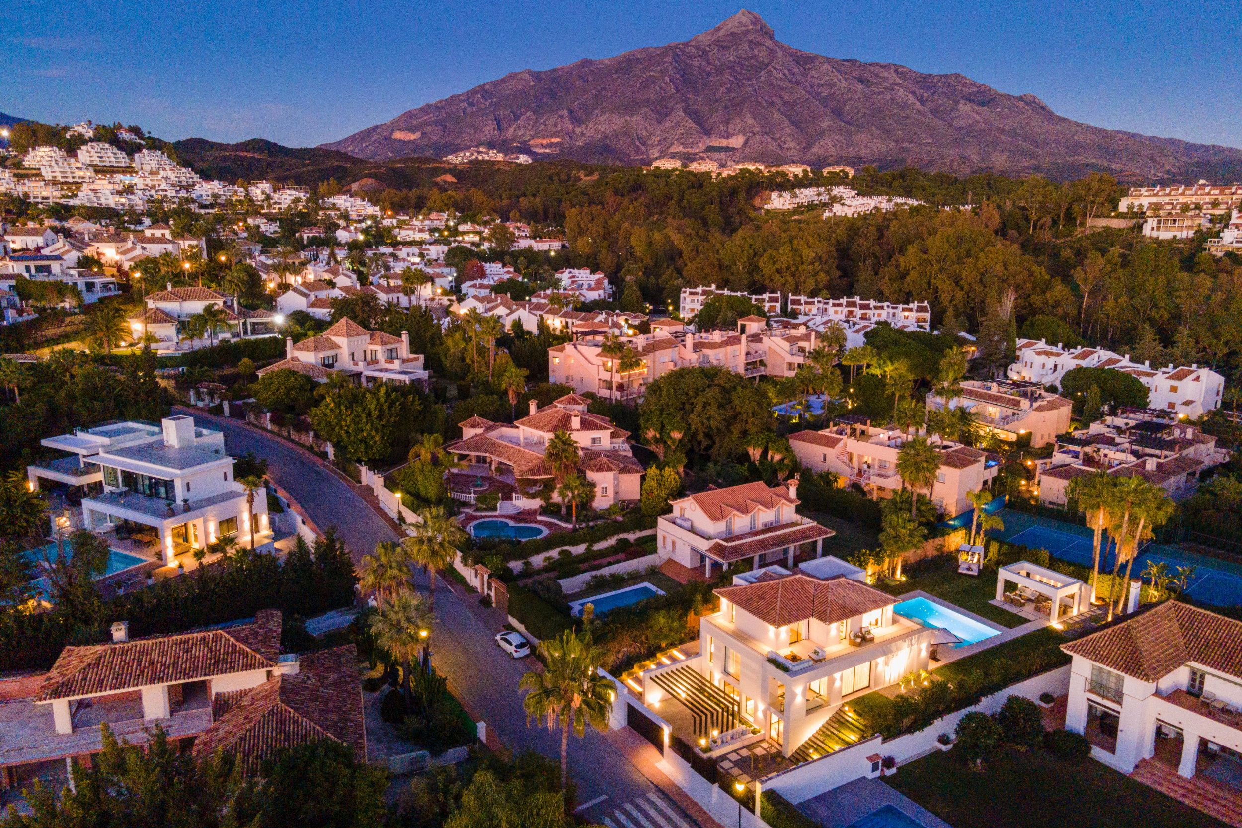 Welcome to Auriga 5, an opulent villa situated in the heart of the Golf Valley. A one-of-a-kind property completely renovated and with bespoke interior design and furnishings. Auriga 5 has exquisite attention to detail and plenty of perks to entertain including a beautifully designed garden, swimming pool and BBQ area, and in the basement of the property, luxuries such as an entertainment room and home spa, delivering a sumptuous lifestyle. Auriga 5 sits within a plot of over 1000 m2, on one of residential Nueva Andalucia’s most desirable streets with views of La Concha mountain. Moments from a number of golf courses and within minutes’ drive from amenities such as shops and leisure facilities, Puerto Banus is also less than 10 minutes by car.