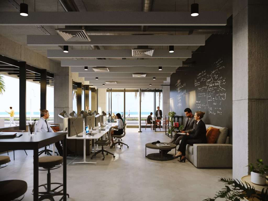 At the top of the building, the rooftop becomes a central meeting point for residents, featuring a swimming pool and solarium designed for relaxation while enjoying panoramic sea views.