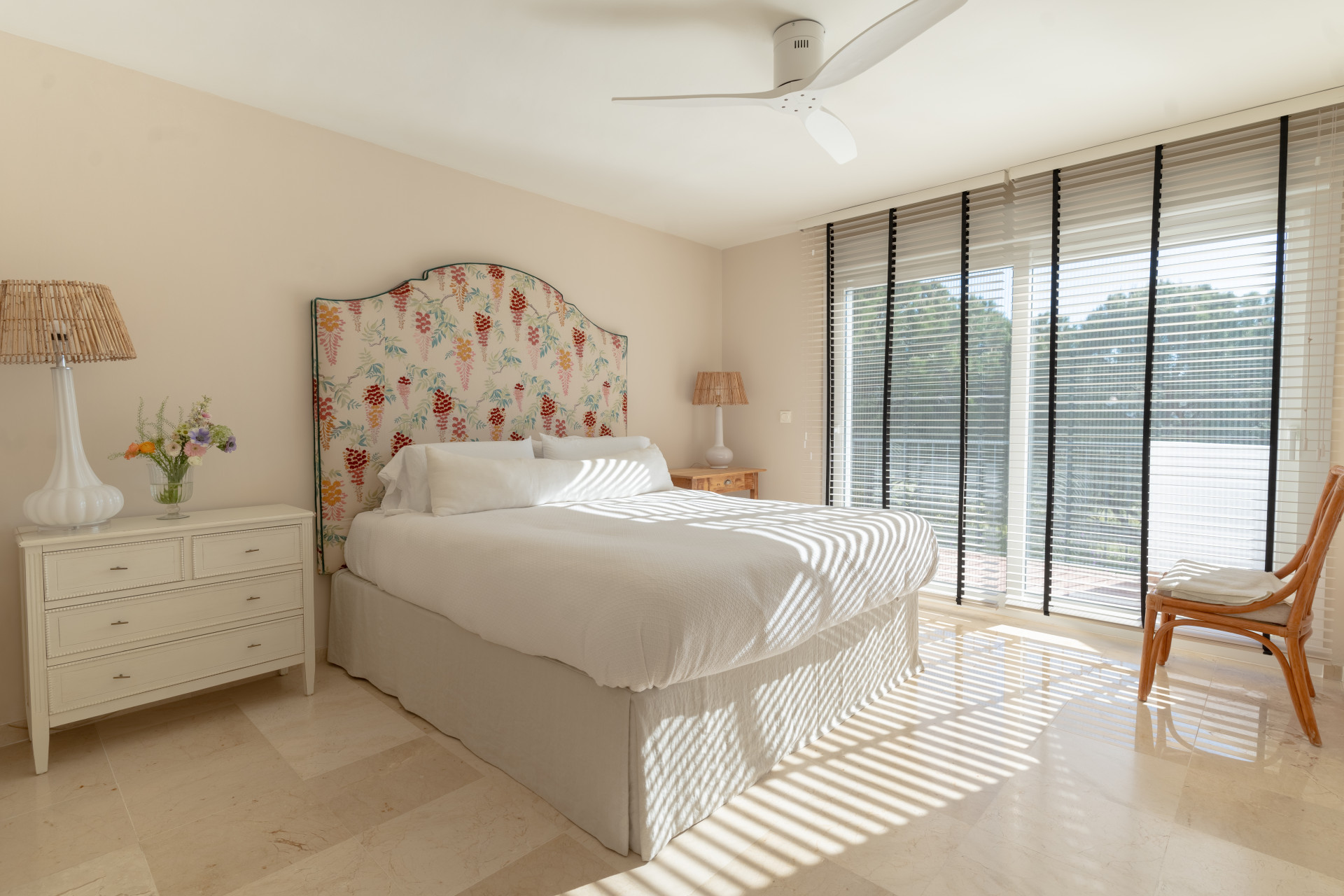 Discover a unique property that redefines the concept of a family home east of Málaga. Situated within a quiet residential urbanization right on the golf course, this townhouse stands out for its full renovation that prioritizes space, natural light, and a curated aesthetic. From the elegant hallway decorated with designer wallpaper to the soaring high ceilings, every detail has been thoughtfully chosen to create a cozy, modern atmosphere that feels like home the moment you enter.